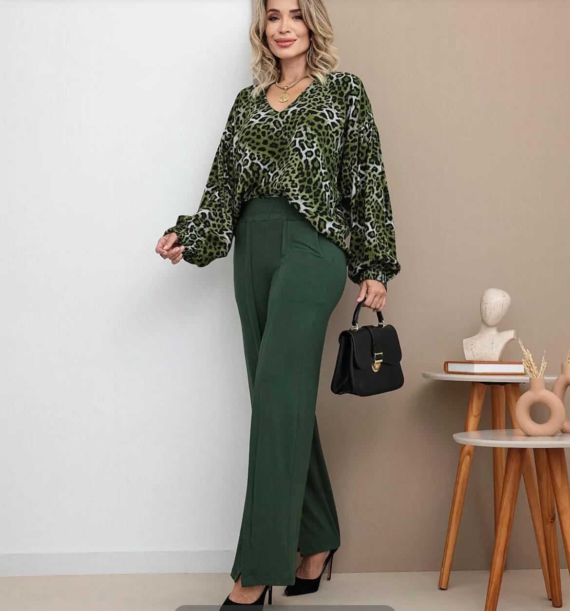 Blusa em viscolinho ,estampa de onça verde/preta.com elástico nas mangas. animal priunt é atemporal e se destaca atualmente. Transmite segurança,poder e ousadia. Um "must have" no seu closet..